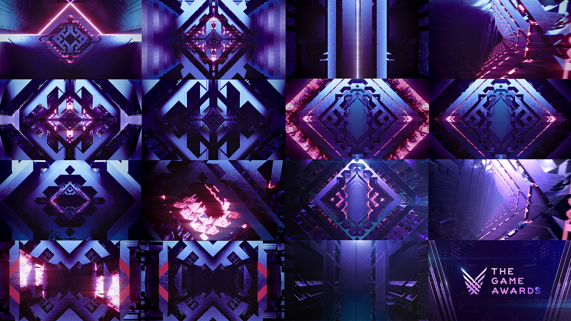 The concept for the graphics package was intended as an homage to level design, while also honouring the generative / procedural visual approach that the client was hoping for. We figured that a procedural maze created with the Game Awards logo parts was a fun visual and a spot-on metaphor for a number of aspects of the game experience.